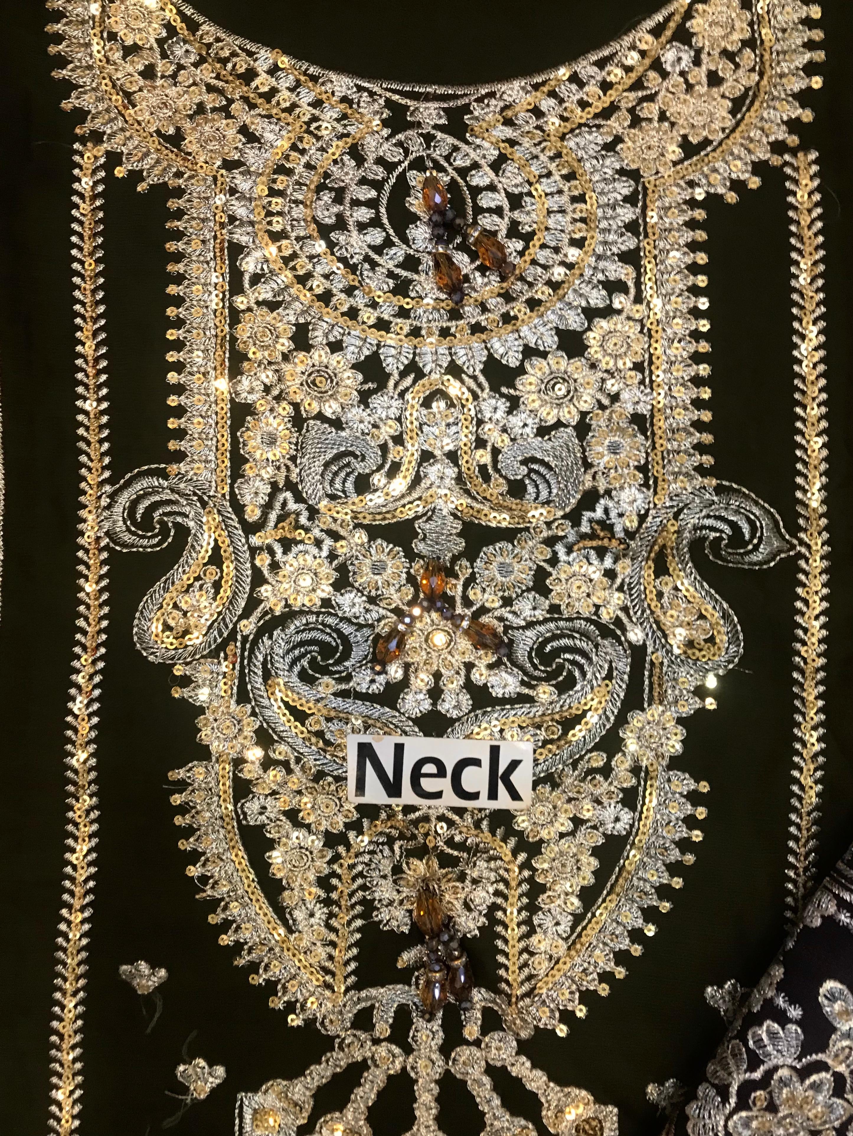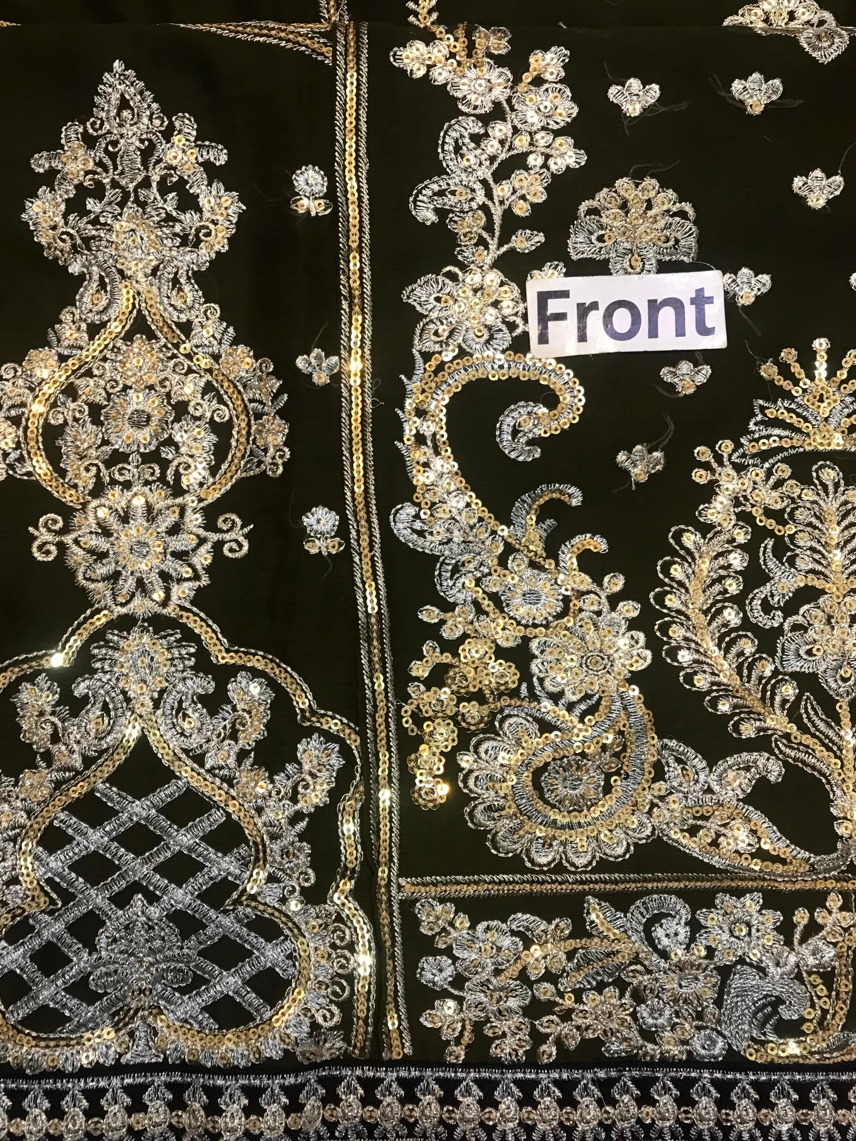 Heavy embroidery with embroidered cuffs on fabric & tassels