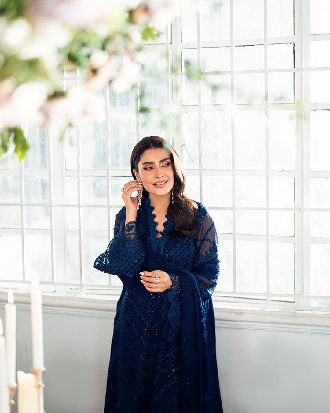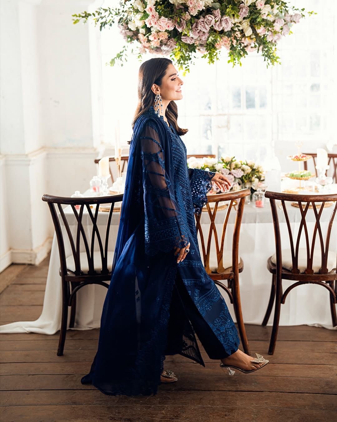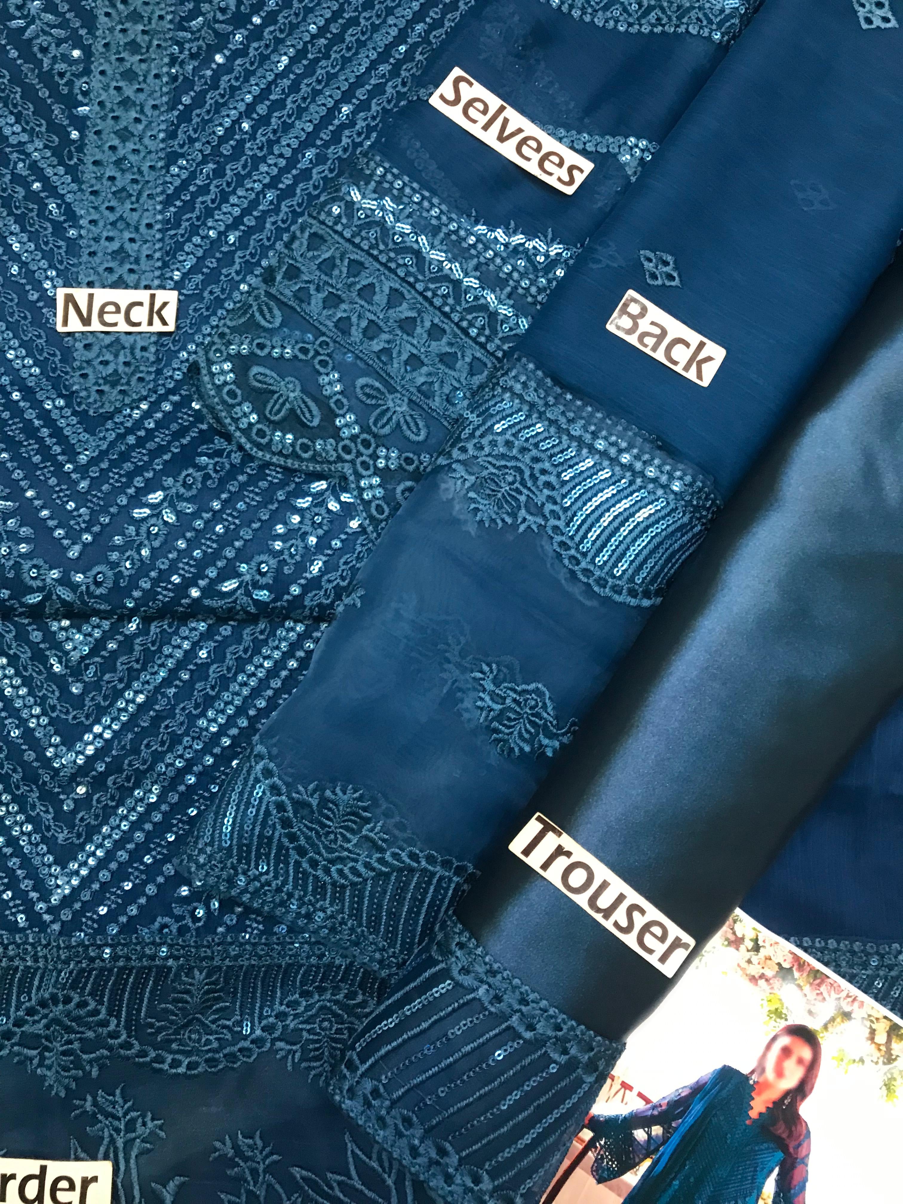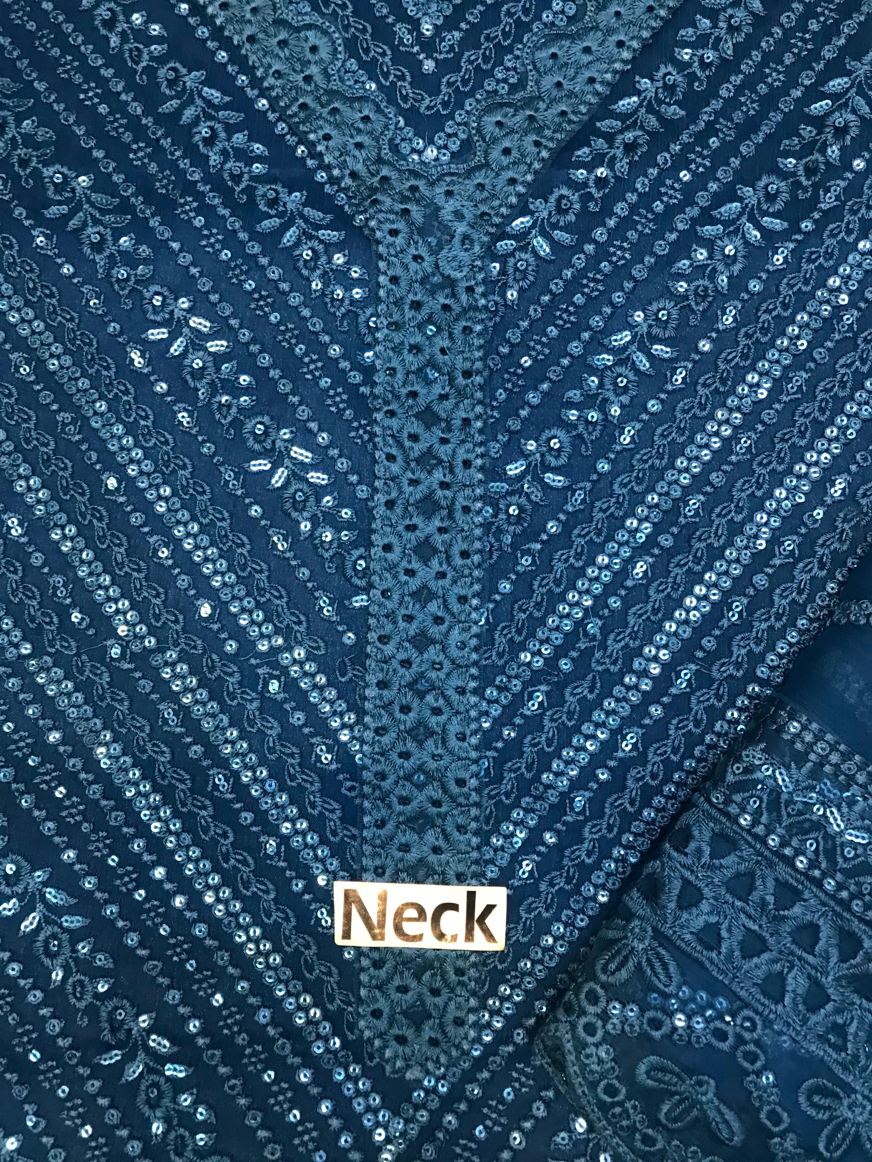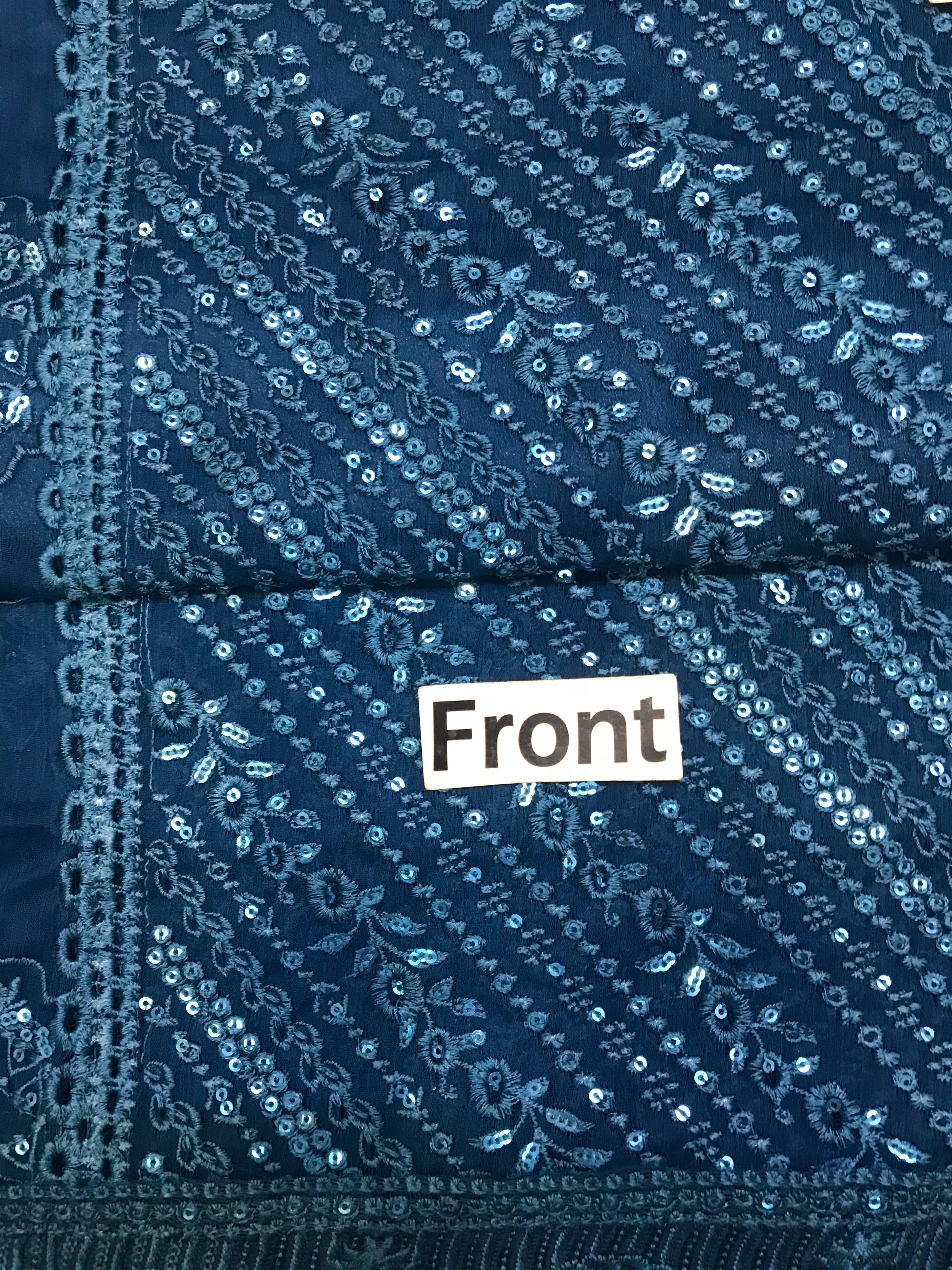 bpFront: Fully heavy embroidered chiffon with embellished neckline and cutwork embroidered border