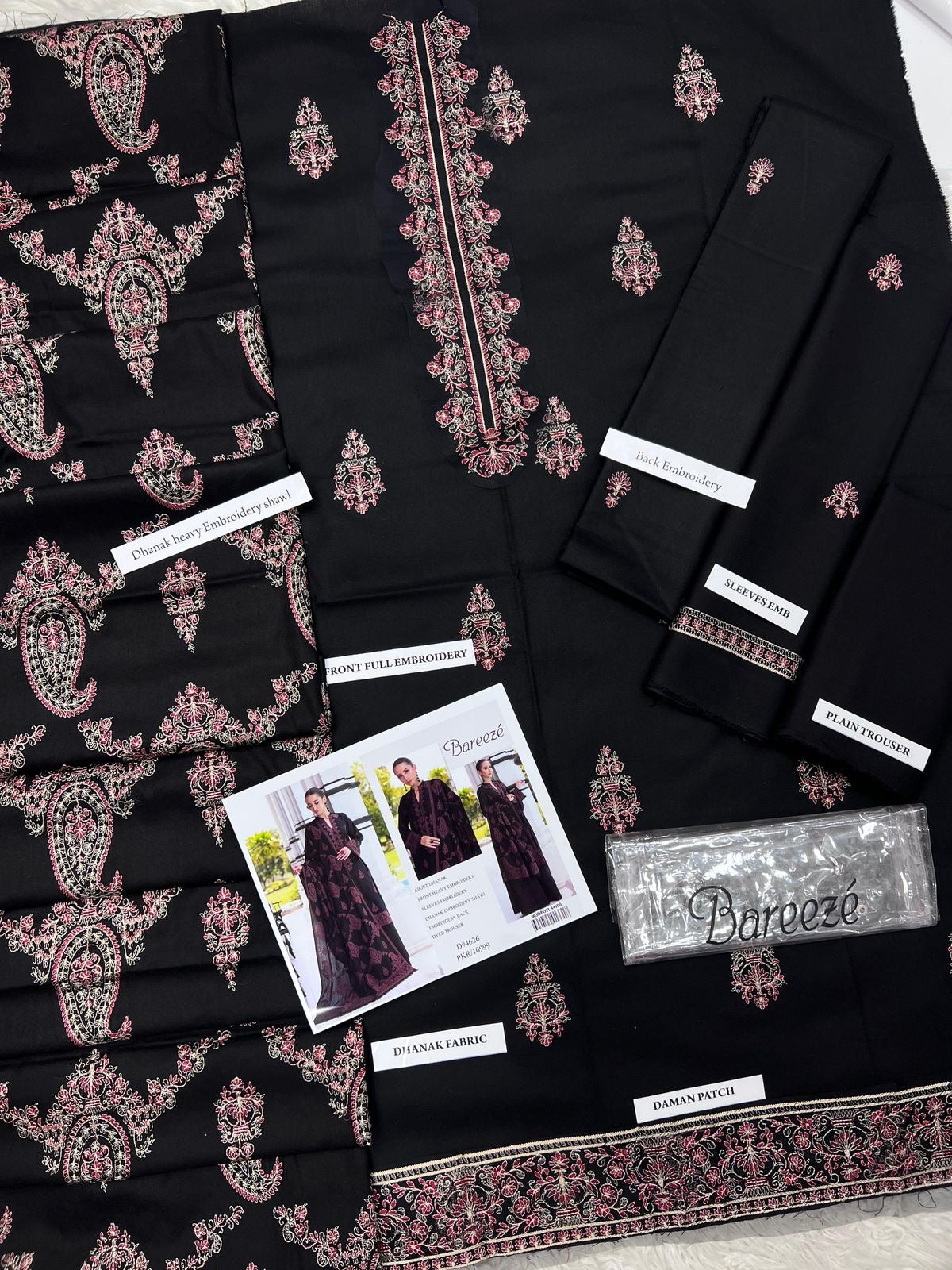 Dress Details: Luxurious Dhanak Shawl with full heavy embroidery Front panel fully embroidered with intricate detailing Sleeves in premium Dhanak with full embroidery Back panel embroidered in elegant patterns Comes with a 100% dyed premium Dhanak fabric for a rich finish