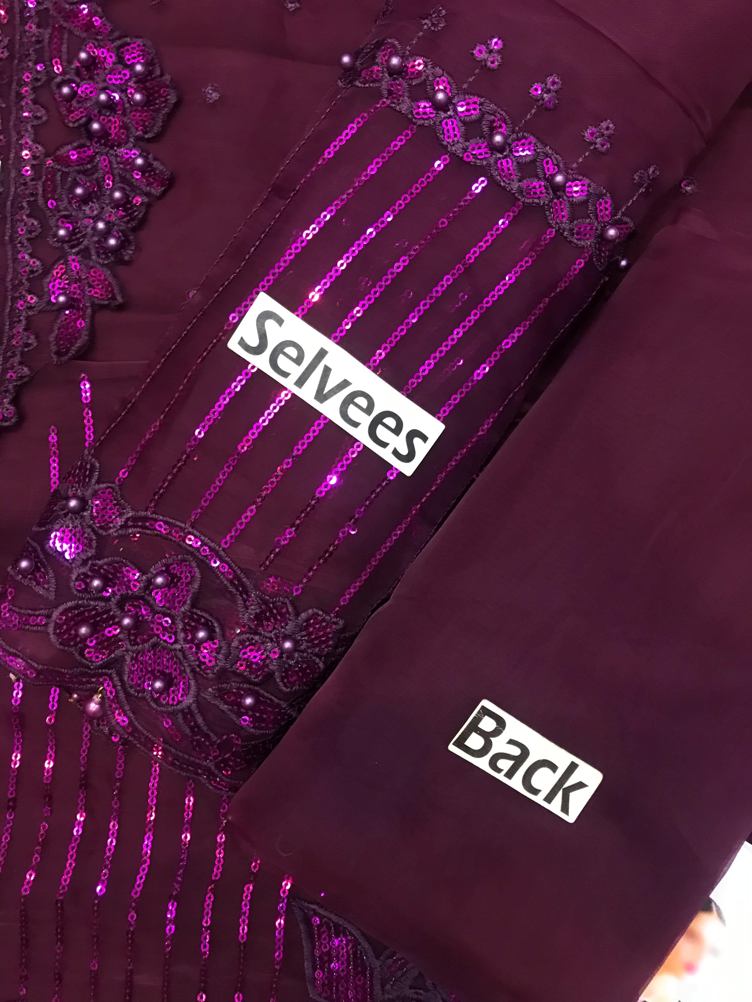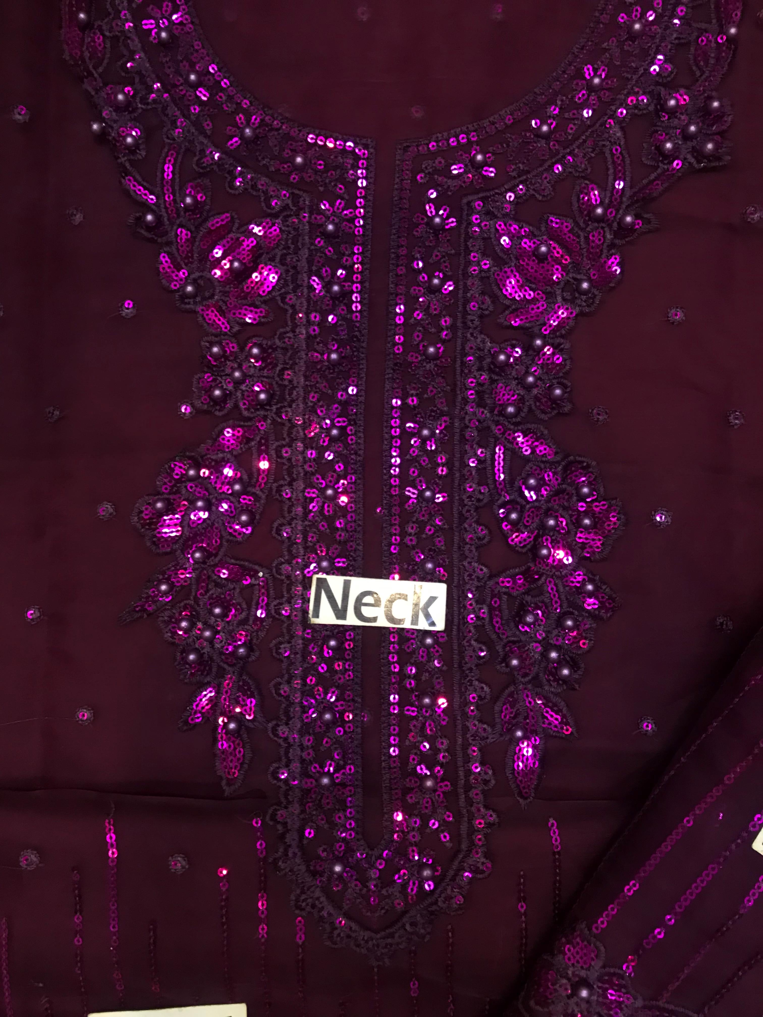 Sleeves: Fully embroidered organza sleeves with heavily embroidered cuffs
